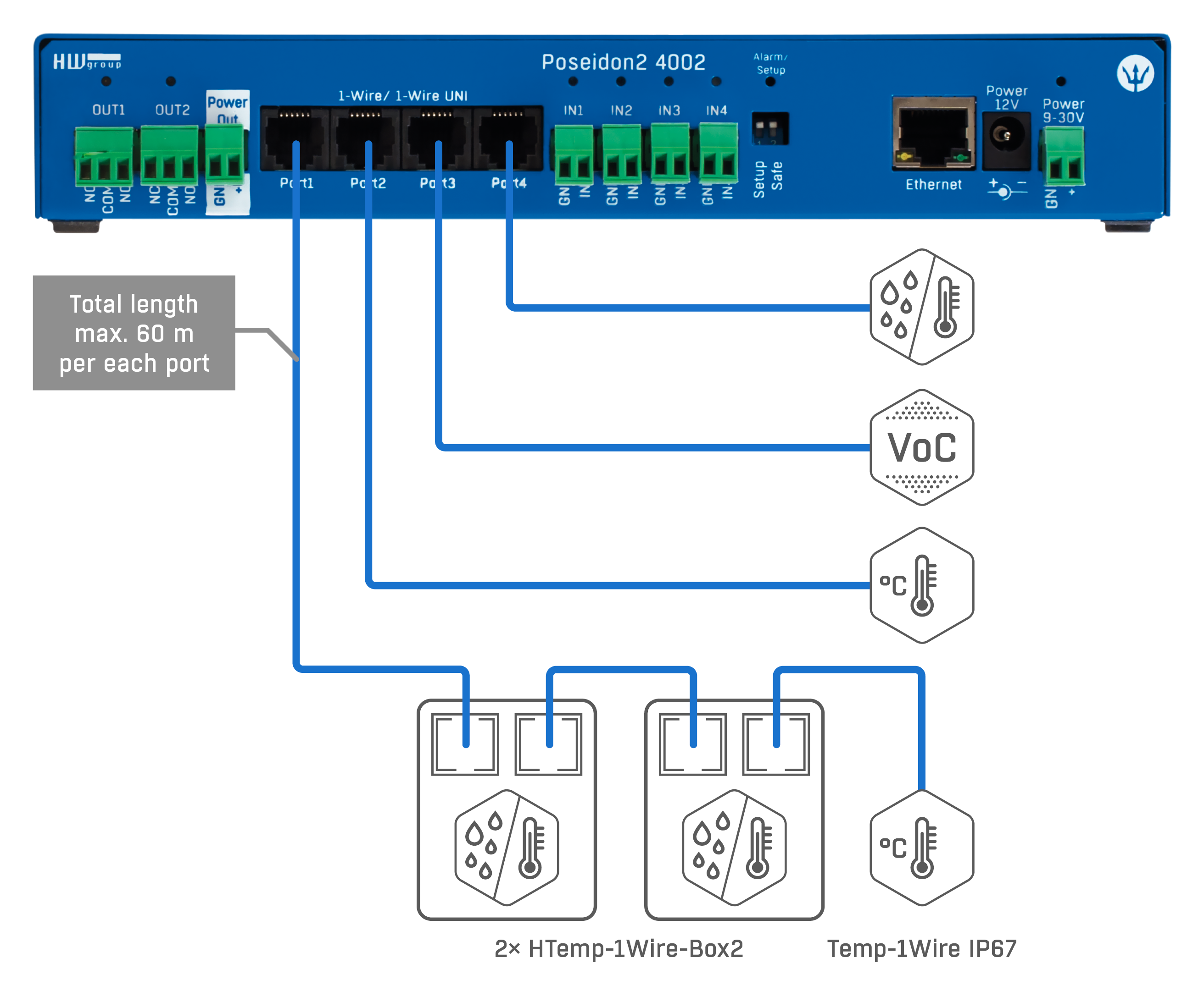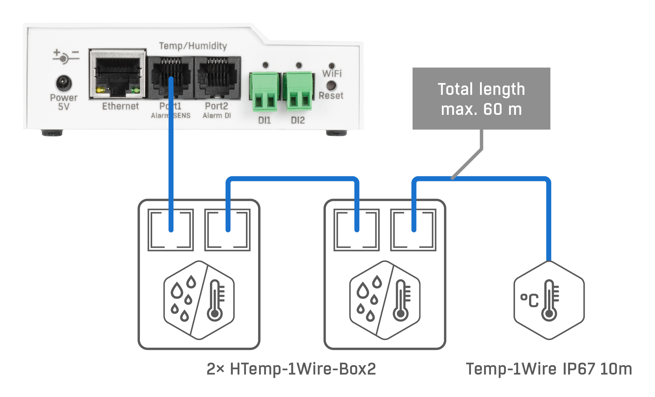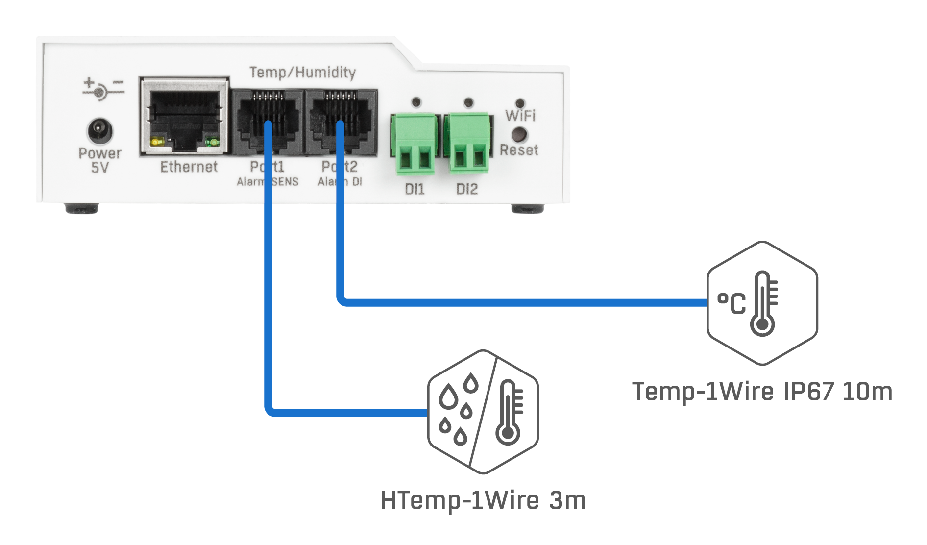 - Это 2 отдельных порта RJ11, но устройство отображает их как 3 разных значения датчика. Два разных физических датчика, но 3 уникальных идентификатора.